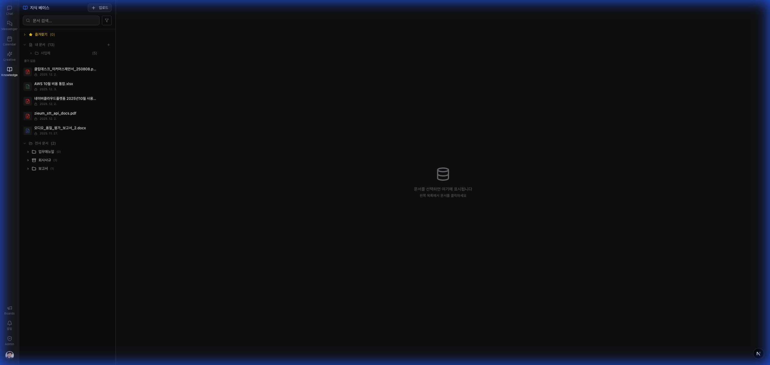 사규, 조직도, 고객 정보, 문서 양식을 AI가 먼저 학습합니다. 매번 설명할 필요 없습니다.